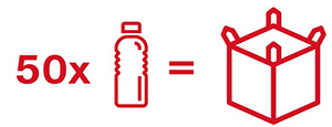 25个1.5升PET瓶可制成1公斤编织R-PET。也就是说,50个PET瓶可制成一个平均2公斤重的集装袋。
