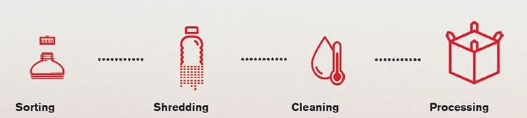 Then the bottles are delivered to the processing site to be made big bags through sorting, cleaning, shredding, processing, etc.