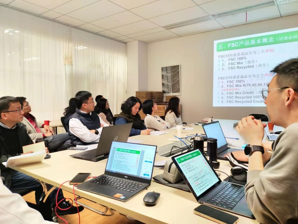 On March 15, 2023, Boxon organized an FSC (Forest Stewardship Council) training session at its Shanghai office, where all employees learned about FSC standards, FSC Trademark usage guidelines, and information for purchasing, selling, and managing FSC-related products.